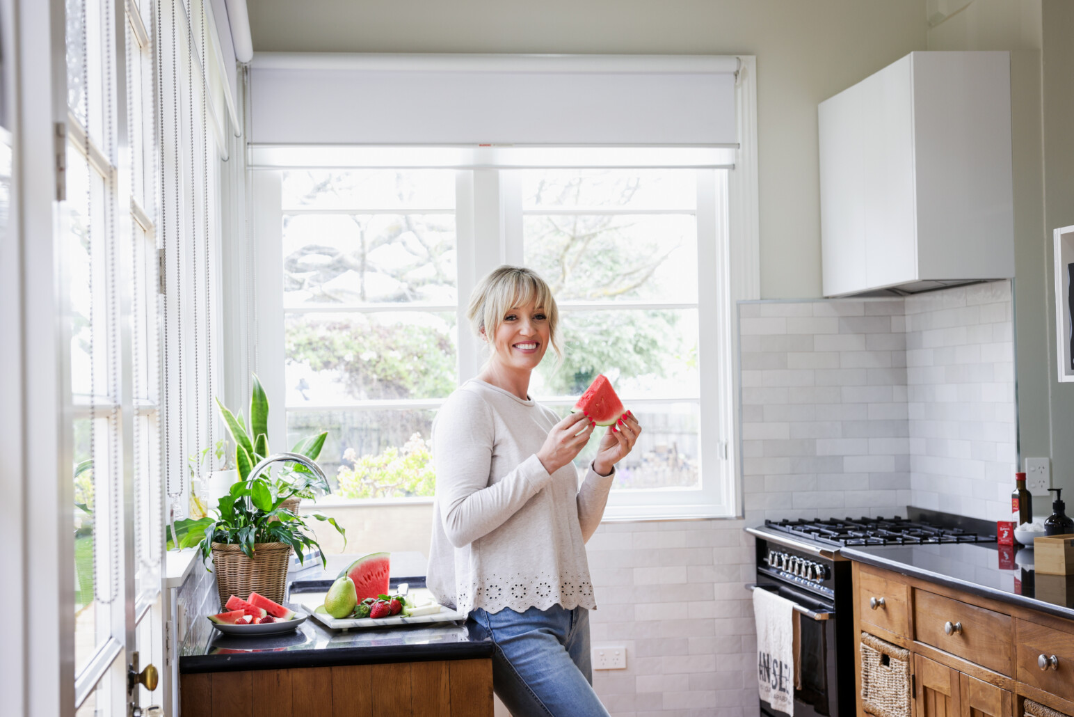 The centrally positioned bathroom features a separate shower, vanity and toilet, while the kitchen is well appointed with a 900mm Fisher & Paykel freestanding gas/electric cooker and granite benchtops, making longer stays feel effortless and relaxed.