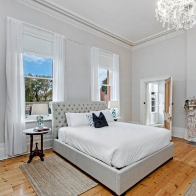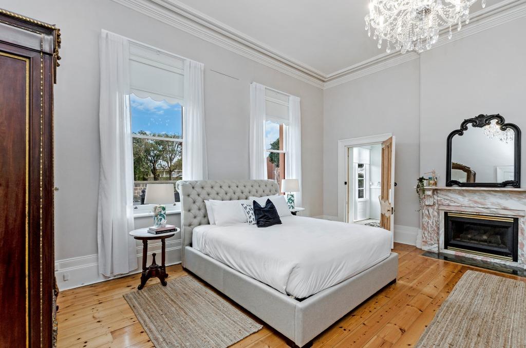 Polished floors, a cosy gas log fire and reverse-cycle heating and cooling create year-round comfort, while the main space is elevated by a striking chandelier. This flows seamlessly into the sunroom sitting area, bathed in natural light and framed by peaceful garden views — an ideal spot to slow down and unwind.